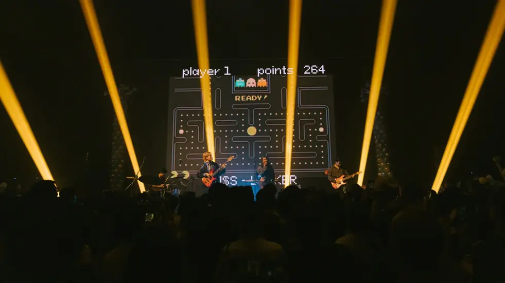 Visual and backdrop display props conform to the characteristics of the band members and also featured lighting and stage design to pay tribute to the 80’s vibes.